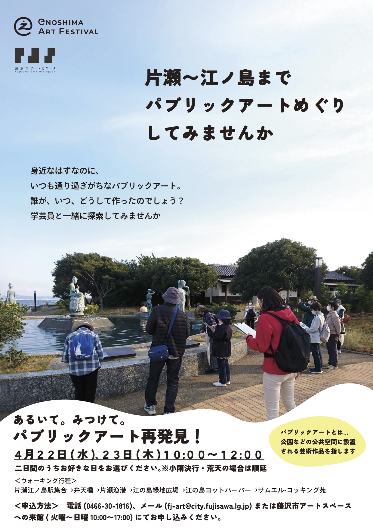 江の島アートフェスティバルのプログラムとして、藤沢市アートスペースでは「あるいて。みつけて。パブリックアート再発見」を実施します。