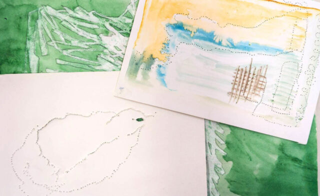 線を引くってなんだろう?形をなぞるってなんだろう?「線」と「形」について、アーティスト平松可南子と一緒に考えて楽しむワークショップです。たくさん「線」を描いたら、そこにいろいろな「形」を見つけてミシンで好きな形をなぞってみます。最後は窓に貼ってみんなで作った作品の鑑賞会をします。