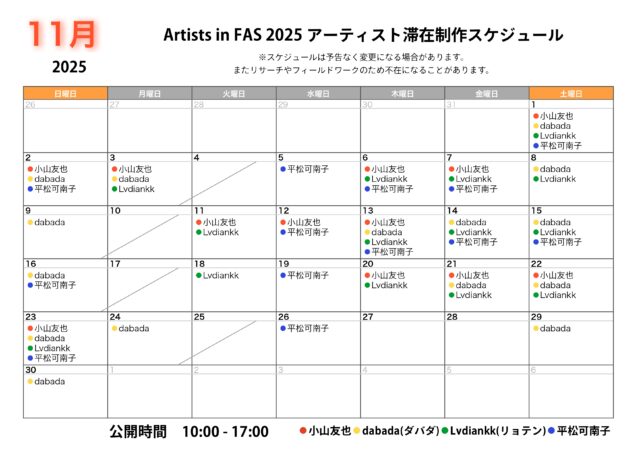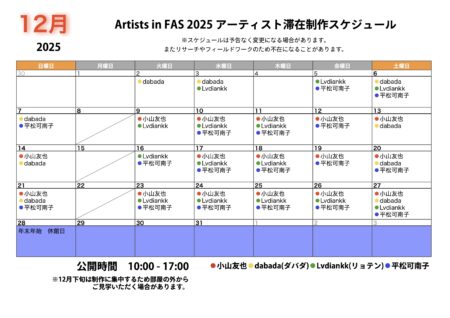 Artists in FAS 2025 入選者4名による滞在制作を行います。