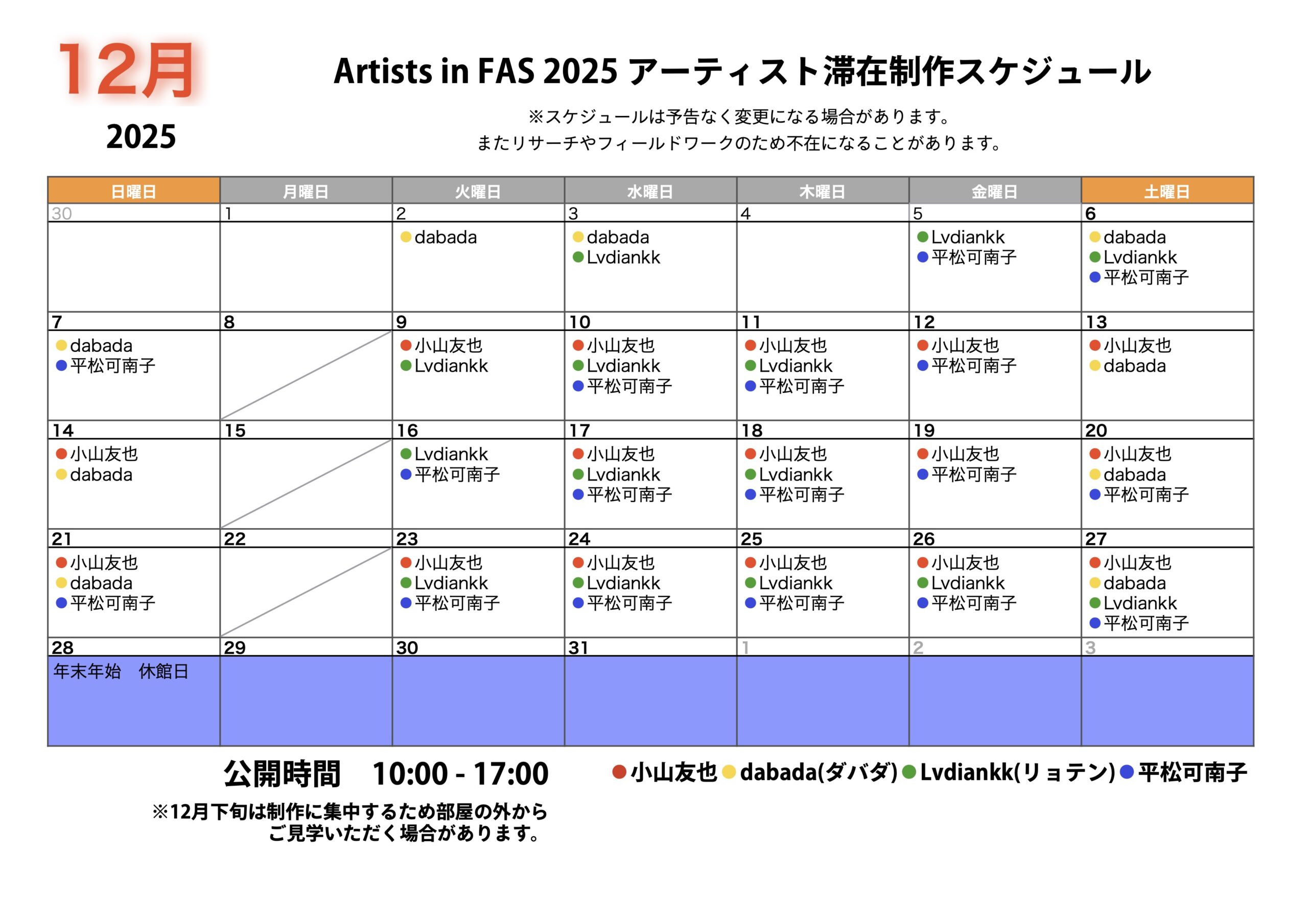 ※スケジュールは予告なく変更になる場合があります。