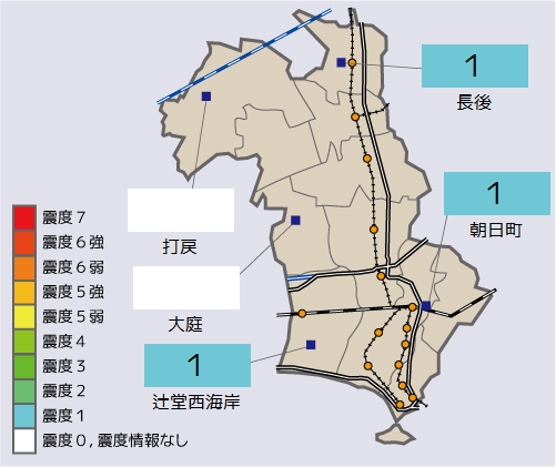 2025年10月26日(22時35分)藤沢市内の震度情報