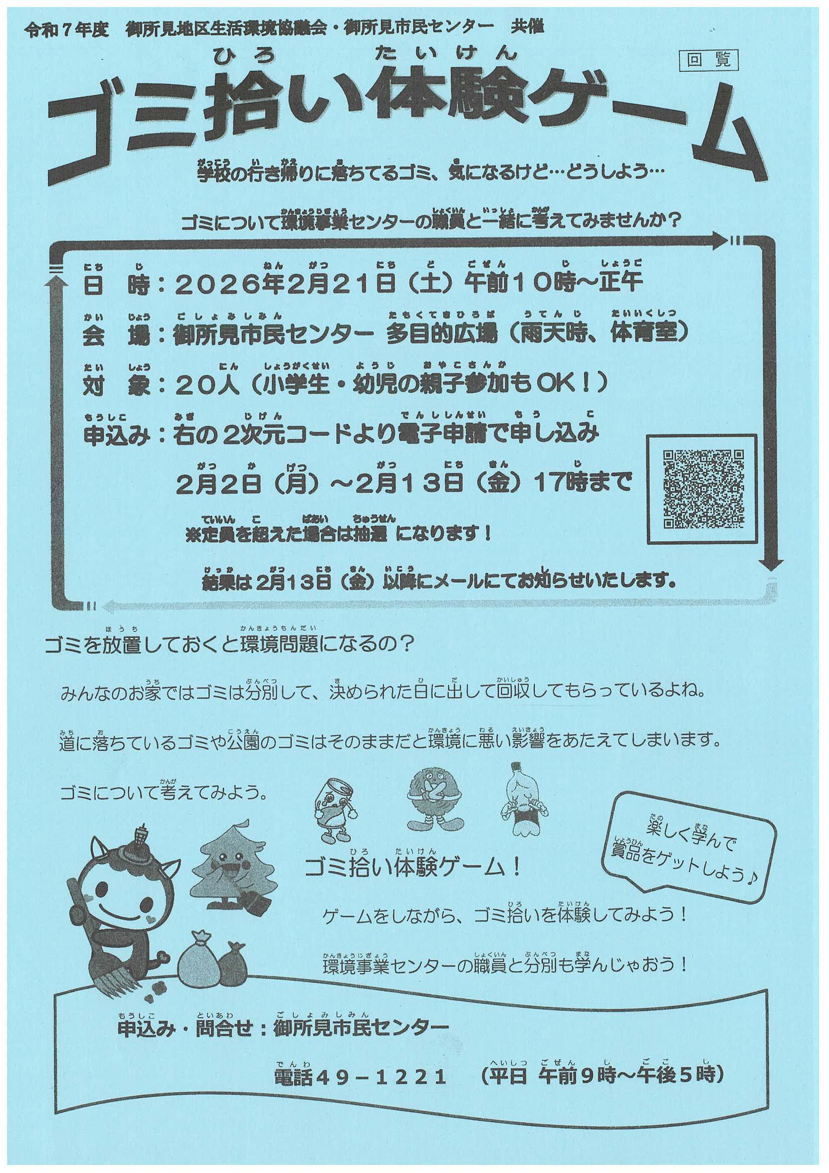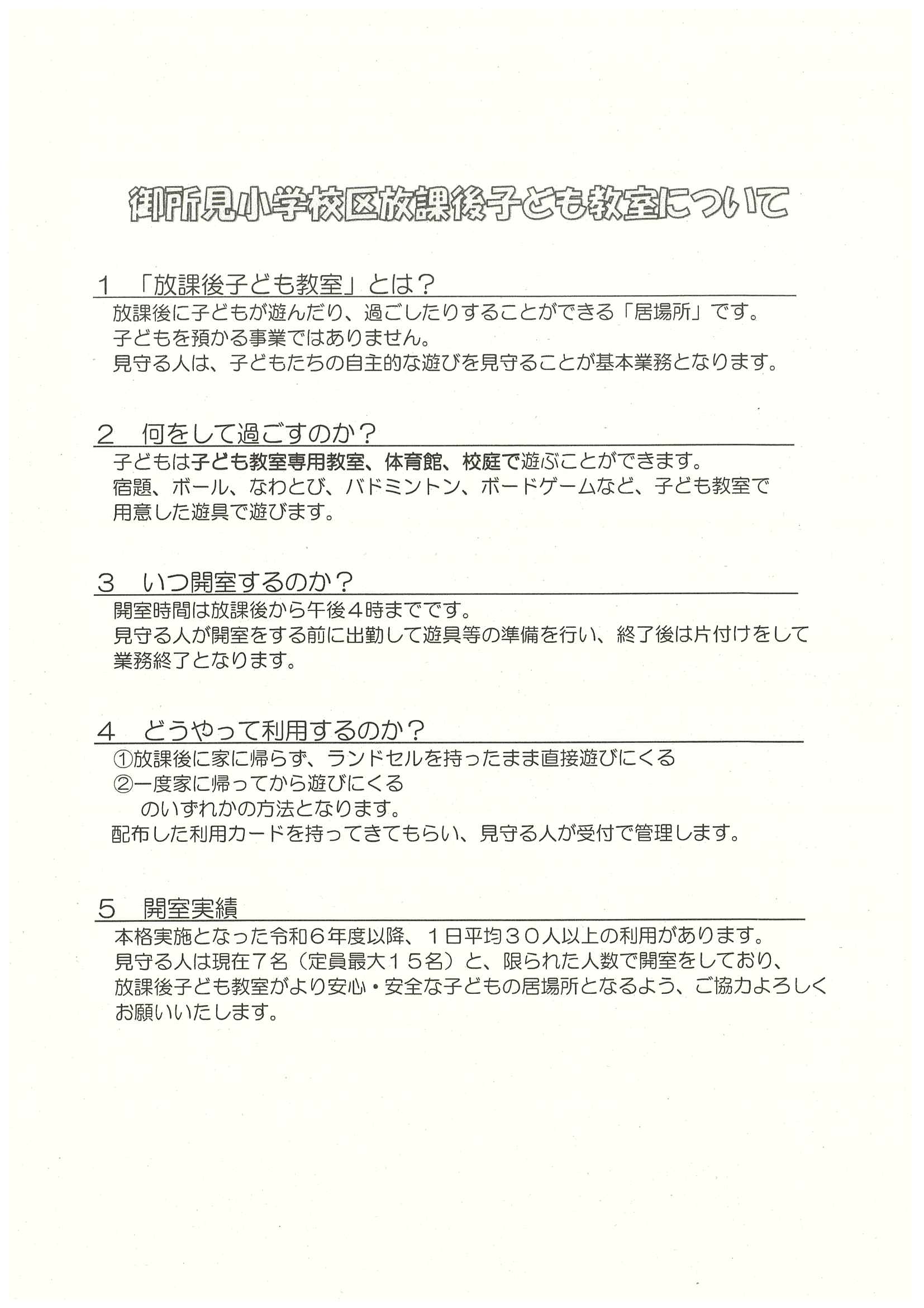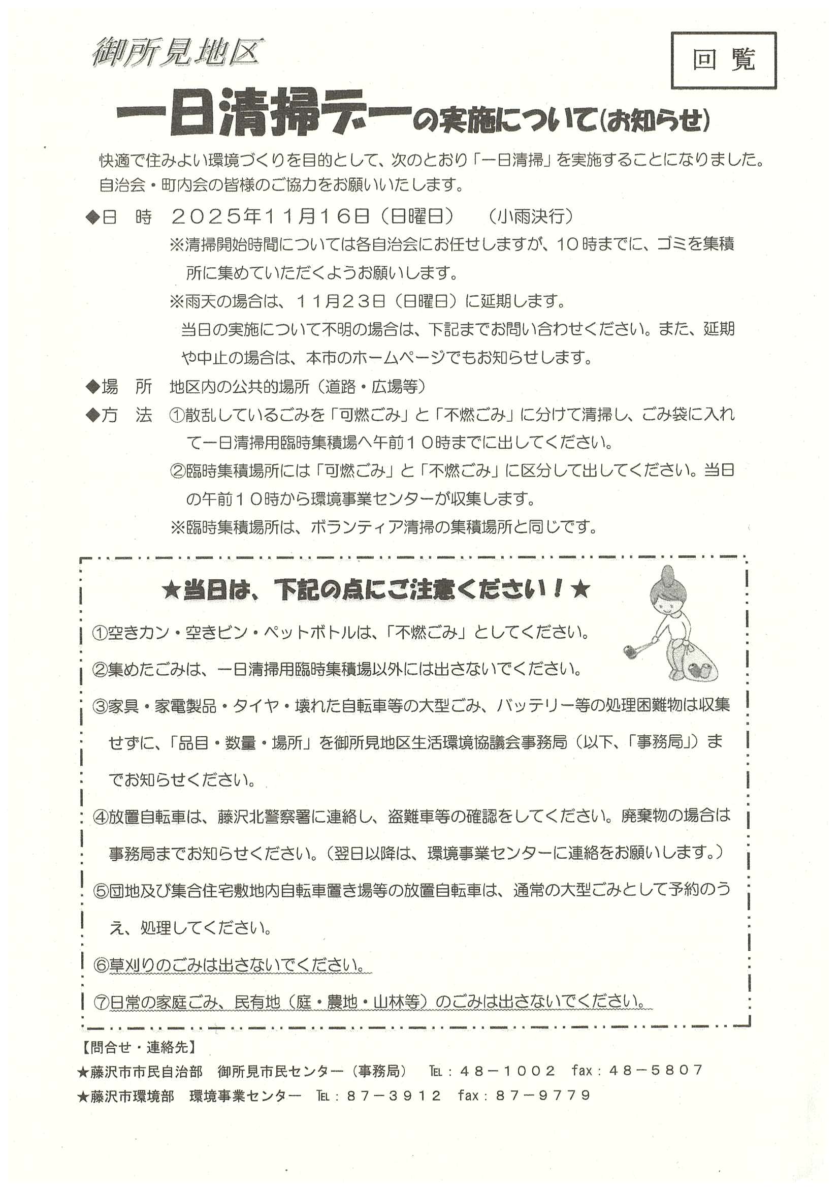 - 御所見地区一日清掃デーの実施について(お知らせ)(PDF:207KB)【11月17日(日曜日)実施※雨天時は11月24日(日曜日)に延期】
