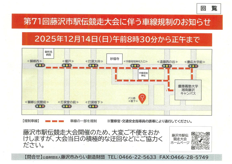 - 第70回藤沢市駅伝競走大会に伴う車線規制のお知らせ(PDF:181KB)
