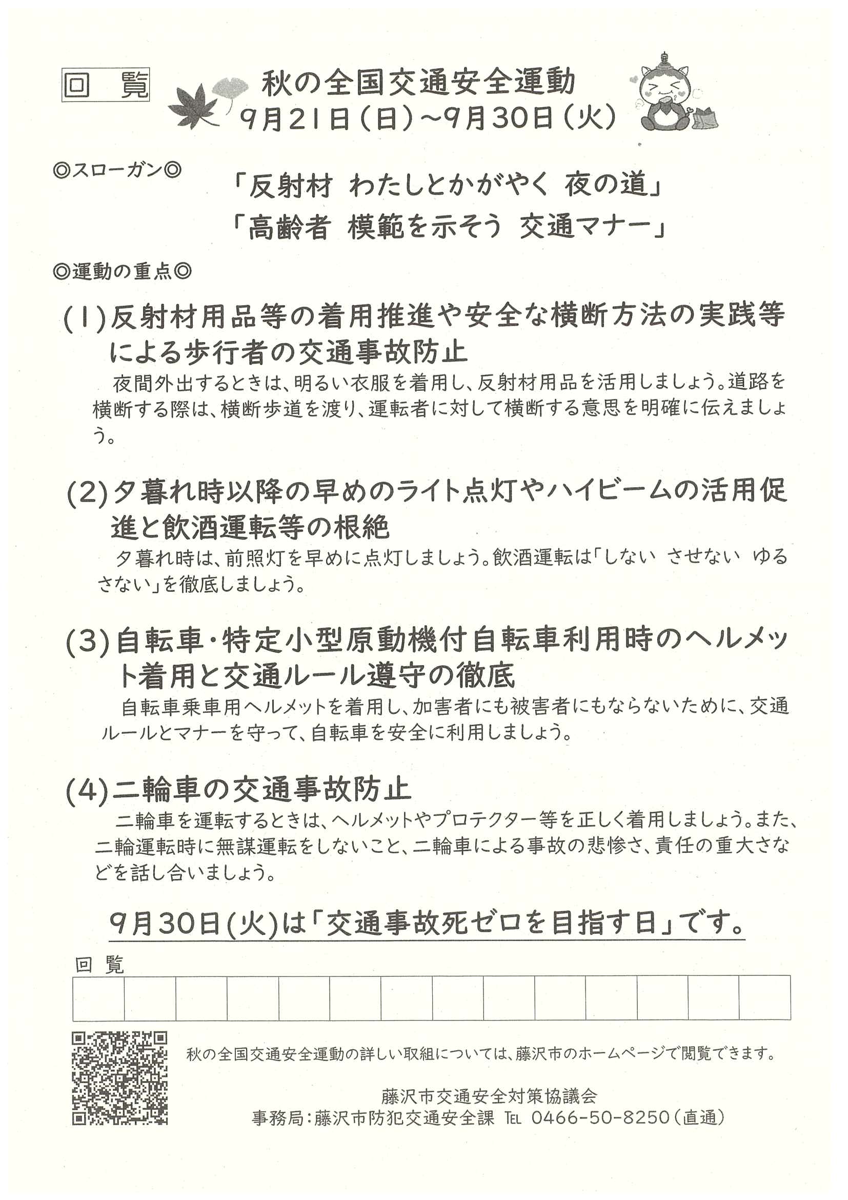 1枚目(JPG:466KB)2枚目(JPG:436KB) - 秋の全国交通安全運動【9月21日(日曜日)~9月30日(火曜日)】