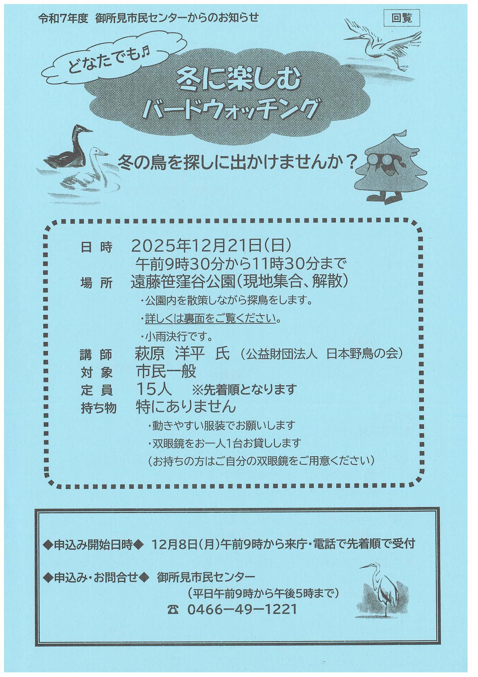 - 冬に楽しむバードウォッチング【申込開始:12月8日(月曜日)】