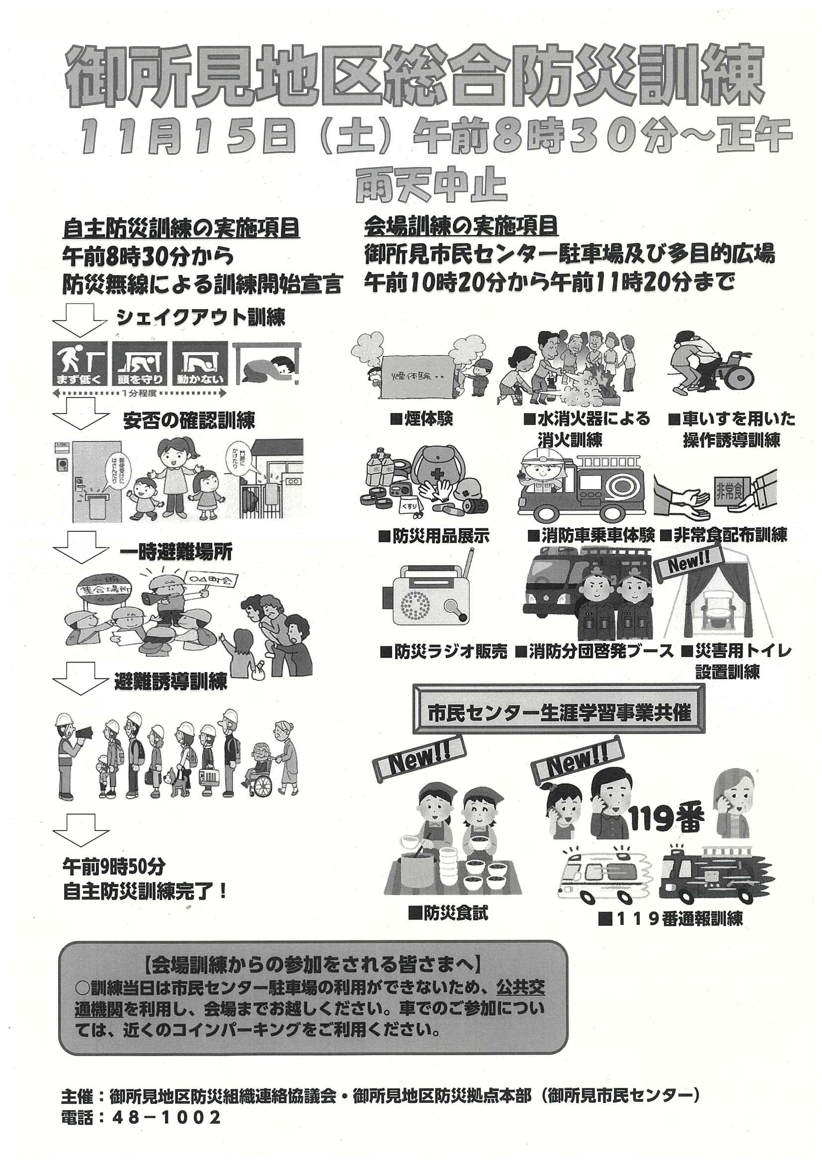- 御所見地区総合防災訓練(PDF:243KB)【11月9日(土曜日)開催】