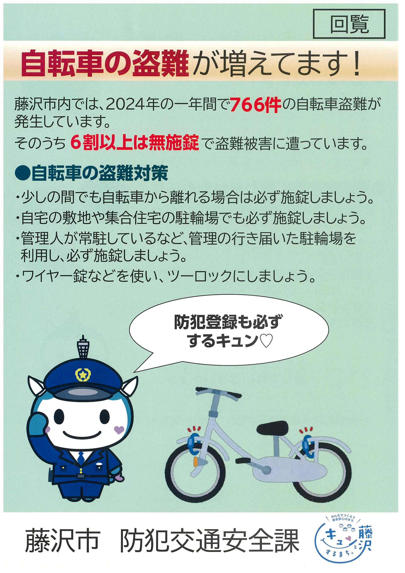 - 自転車の盗難が増えています!預貯金詐欺にご注意ください