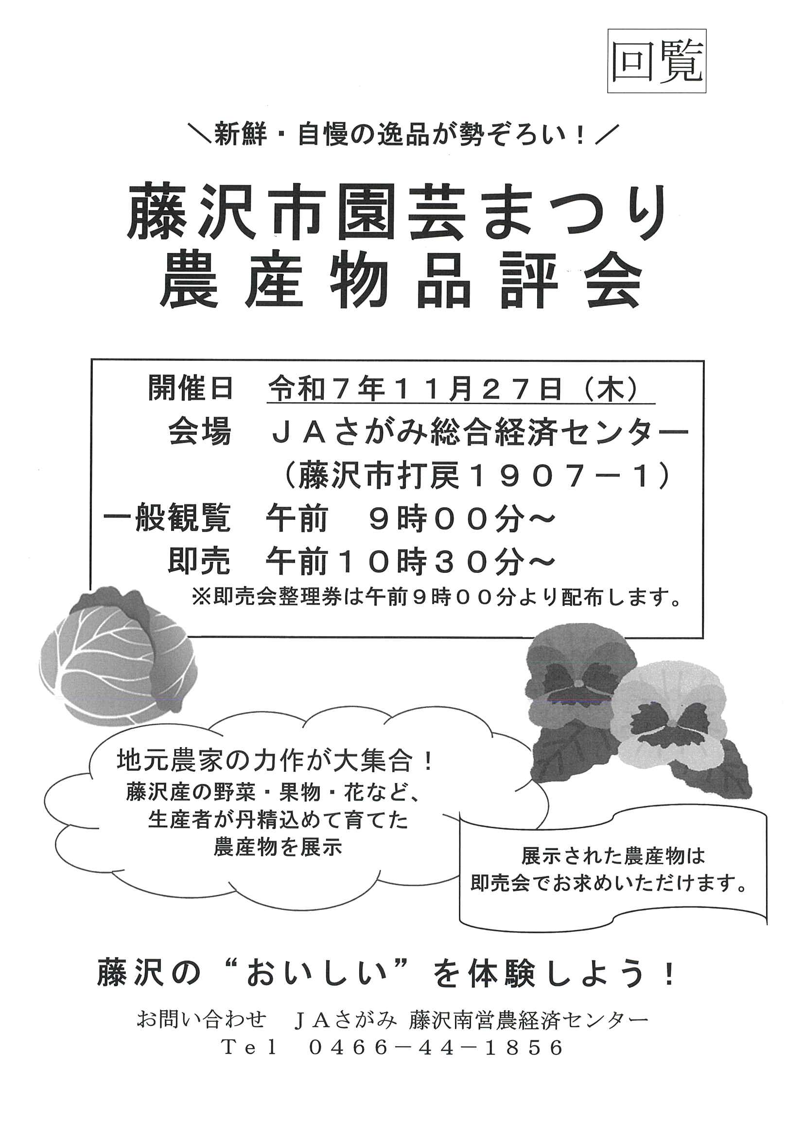 - 藤沢市園芸まつり農産物品評会(PDF:160KB)【11月28日(木曜日)開催】