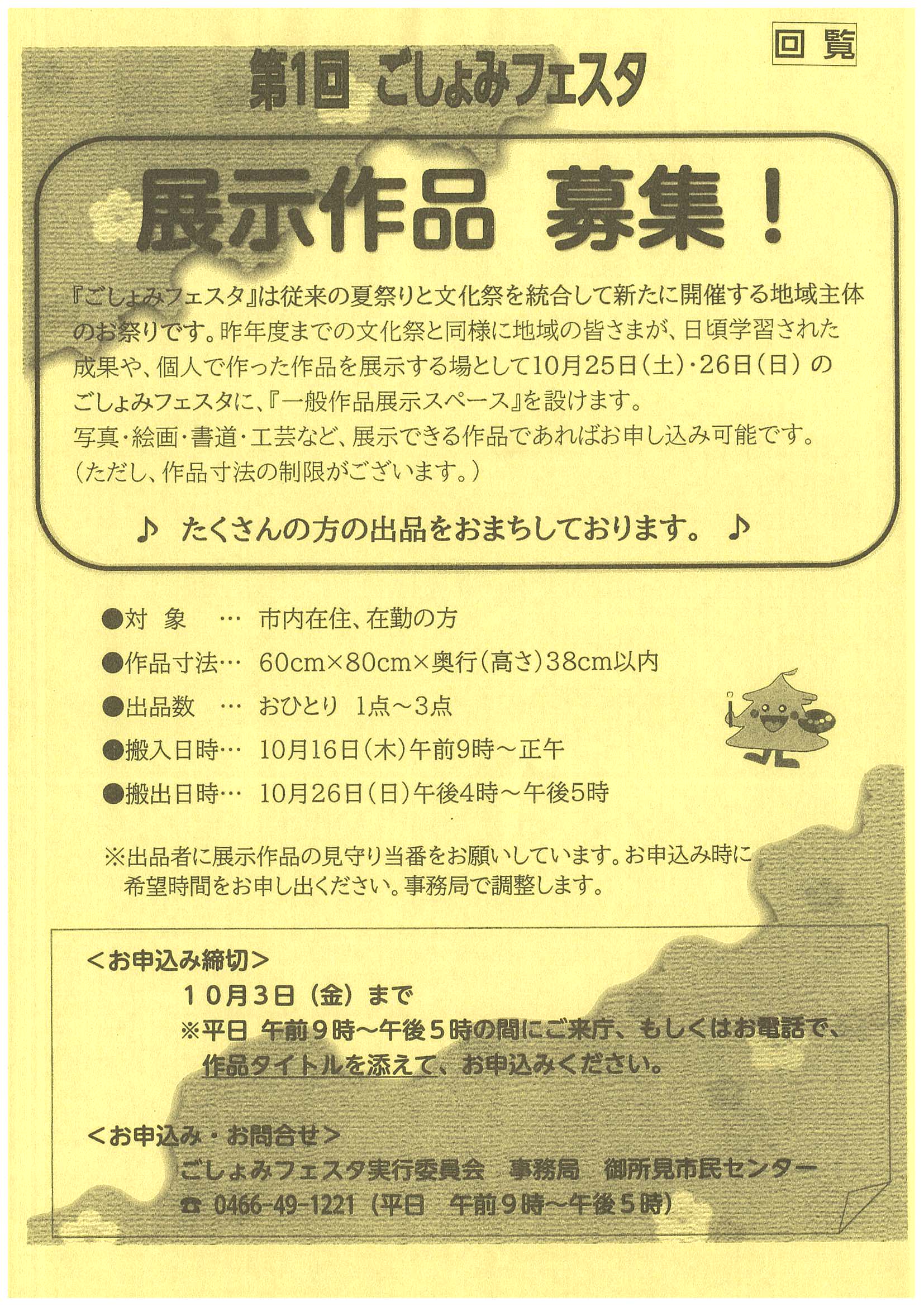- 第1回ごしょみフェスタ展示作品募集!(JPG:430KB)【10月3日(金曜日)まで】