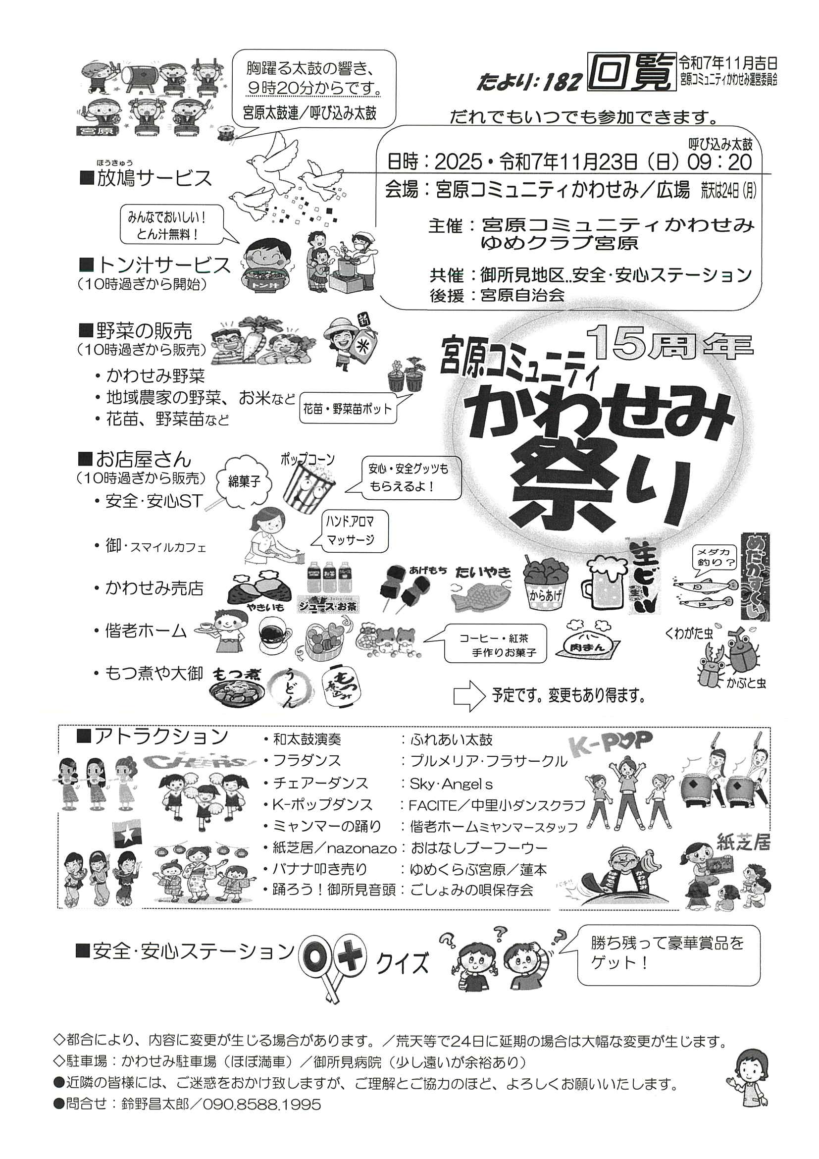 - 宮原コミュニティかわせみ祭り(PDF:221KB)【11月16日(土曜日)開催】