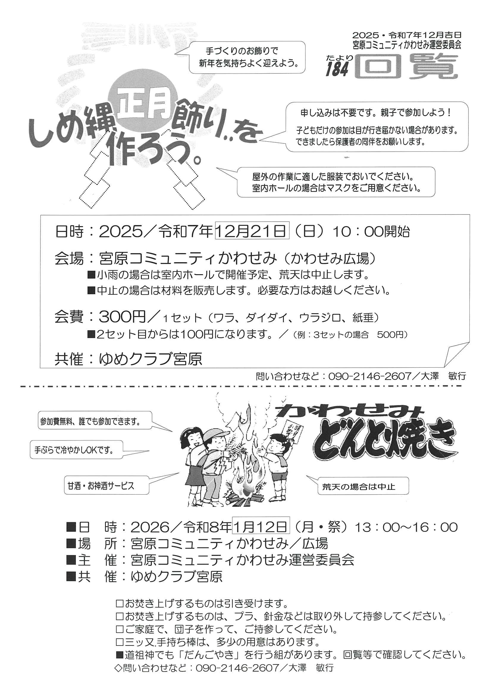 - 宮原コミュニティかわせみしめ縄正月飾りを作ろう。(PDF:232KB)【12月22日(日曜日)開催】