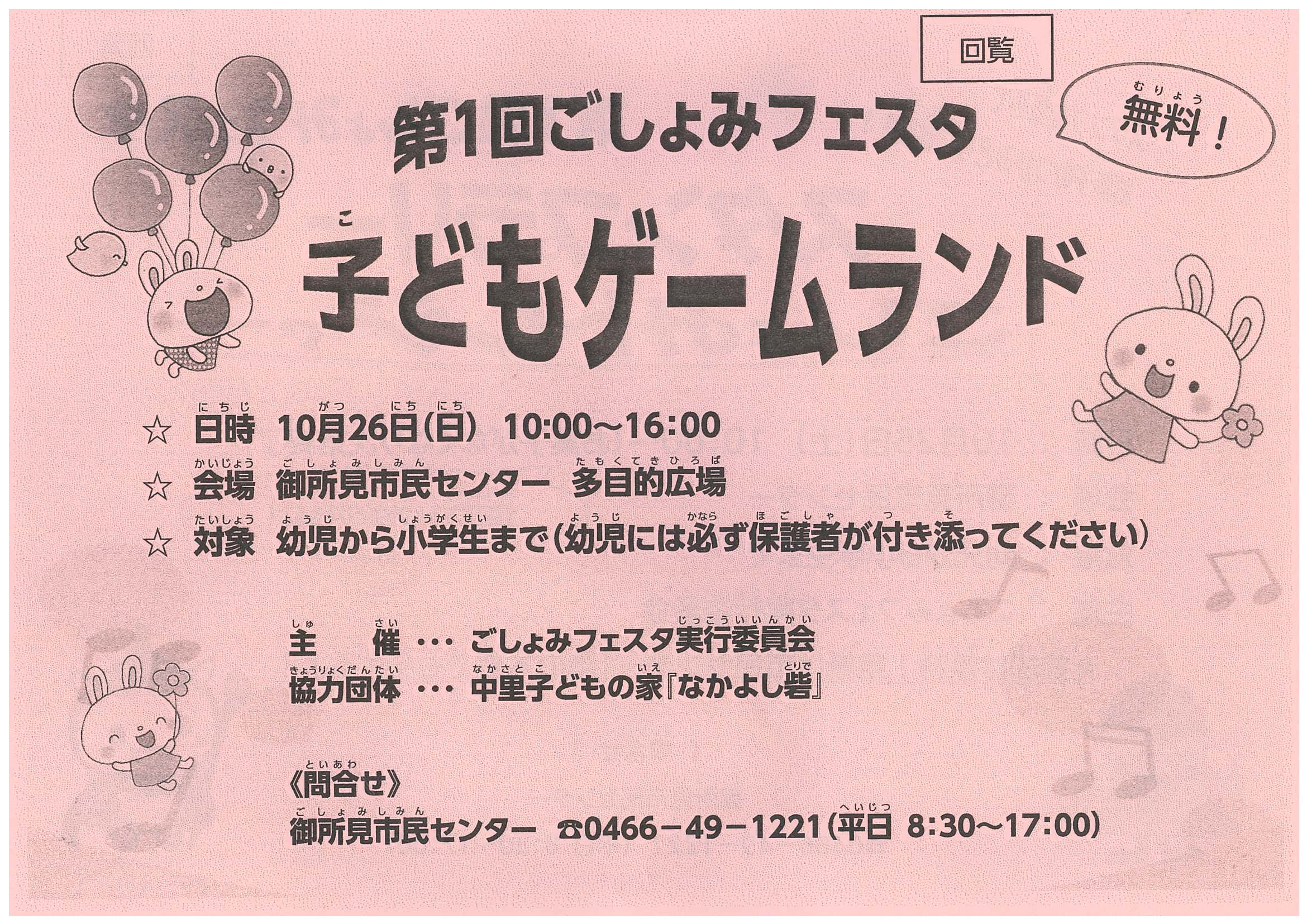 ※申込期間:10月8日(水曜日)から - 第1回ごしょみフェスタ子どもゲームランド(JPG:526KB)【10月26日(日曜日)開催】