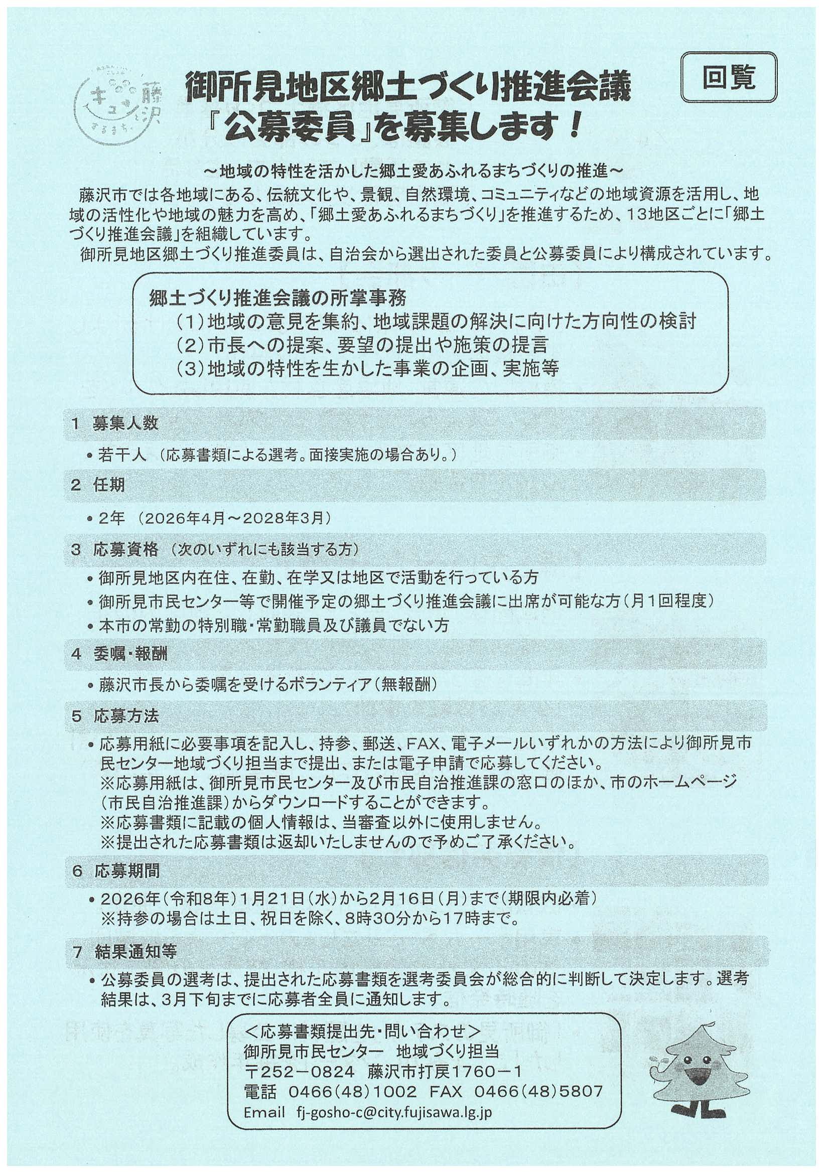 - 御所見地区郷土づくり推進会議『公募委員』を募集します!【申込期間:1月21日(水曜日)~2月16日(月曜日)】