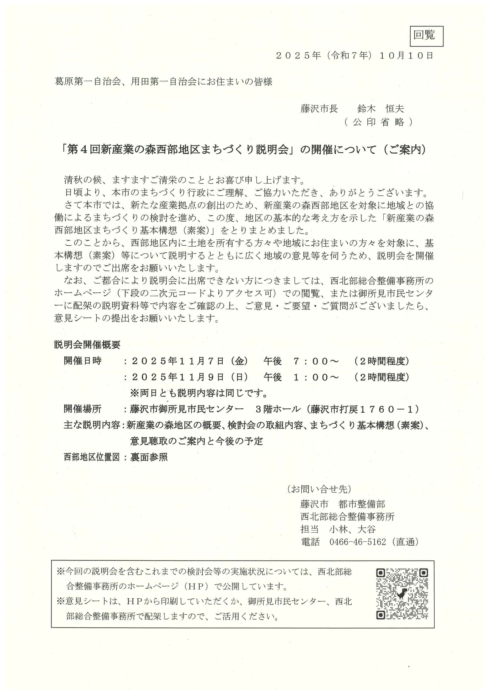 - 「第3回新産業の森西部地区まちづくり説明会」の開催について(ご案内)(PDF:410KB)【3月2日(日曜日)開催】※一部自治会のみ回覧