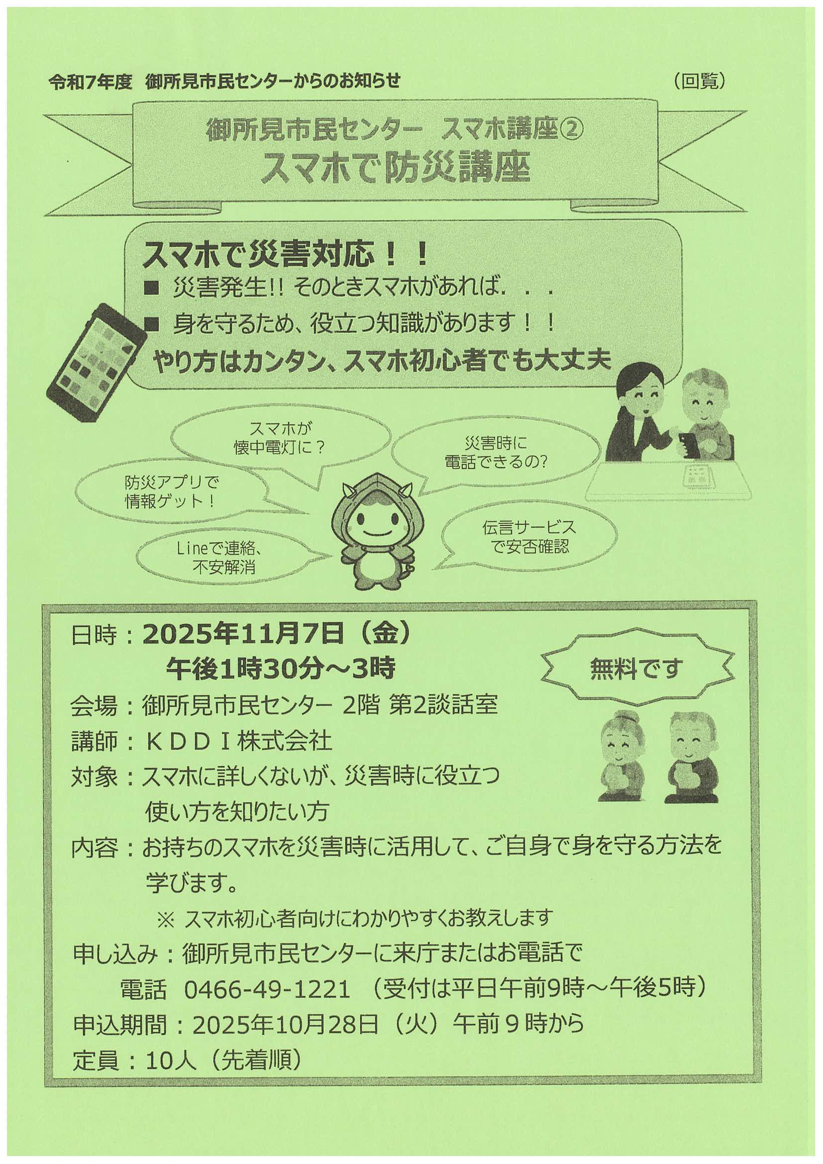 - スマホで防災講座(JPG:302KB)【申込期間:10月28日(火曜日)】