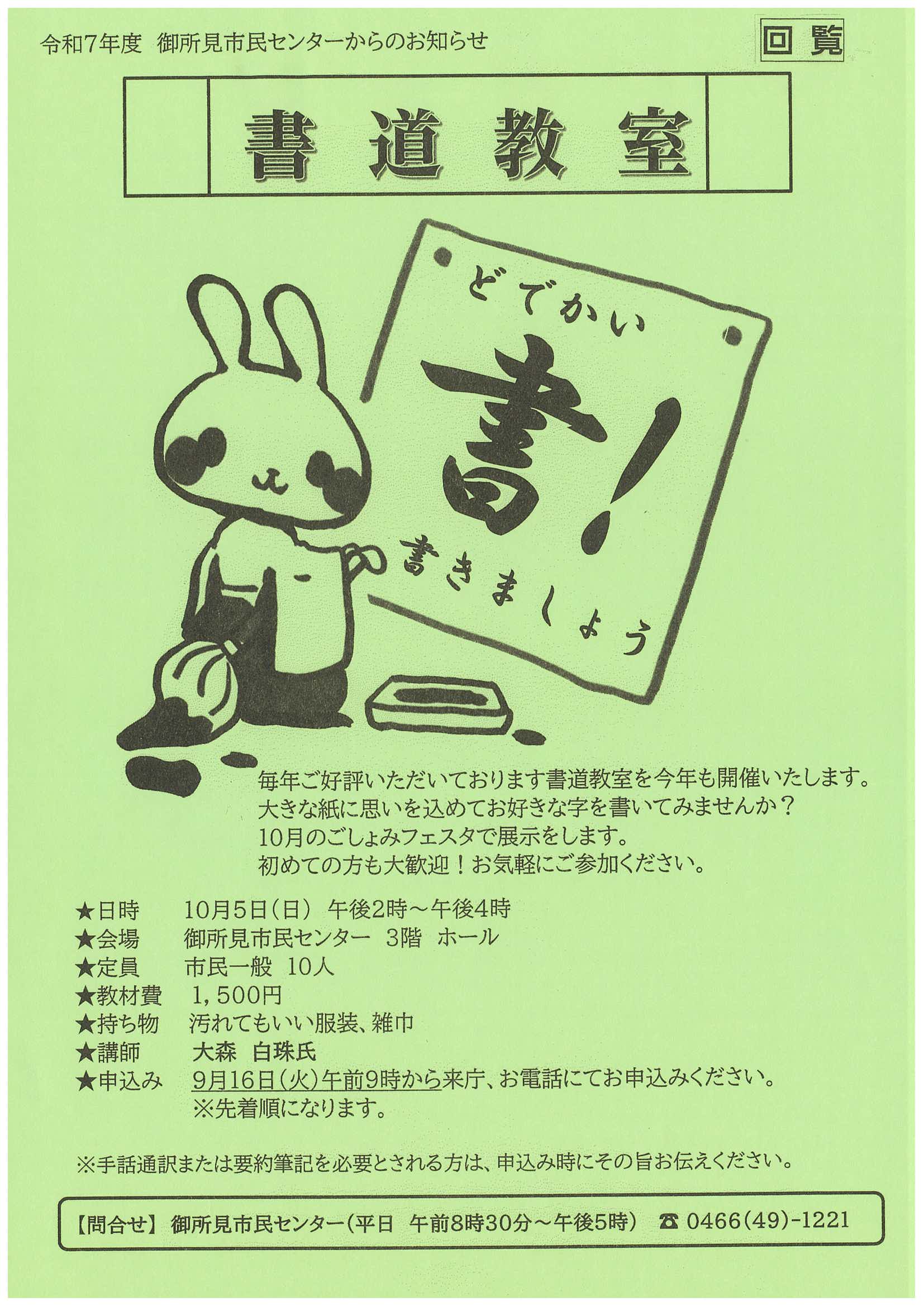 - 書道教室(JPG:279KB)【10月5日(日曜日)開催】