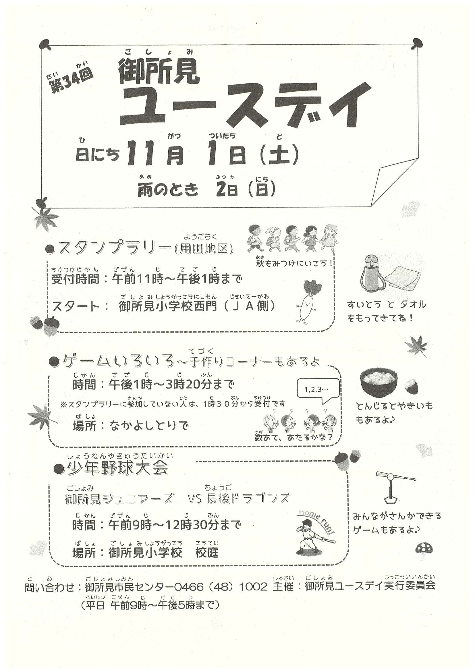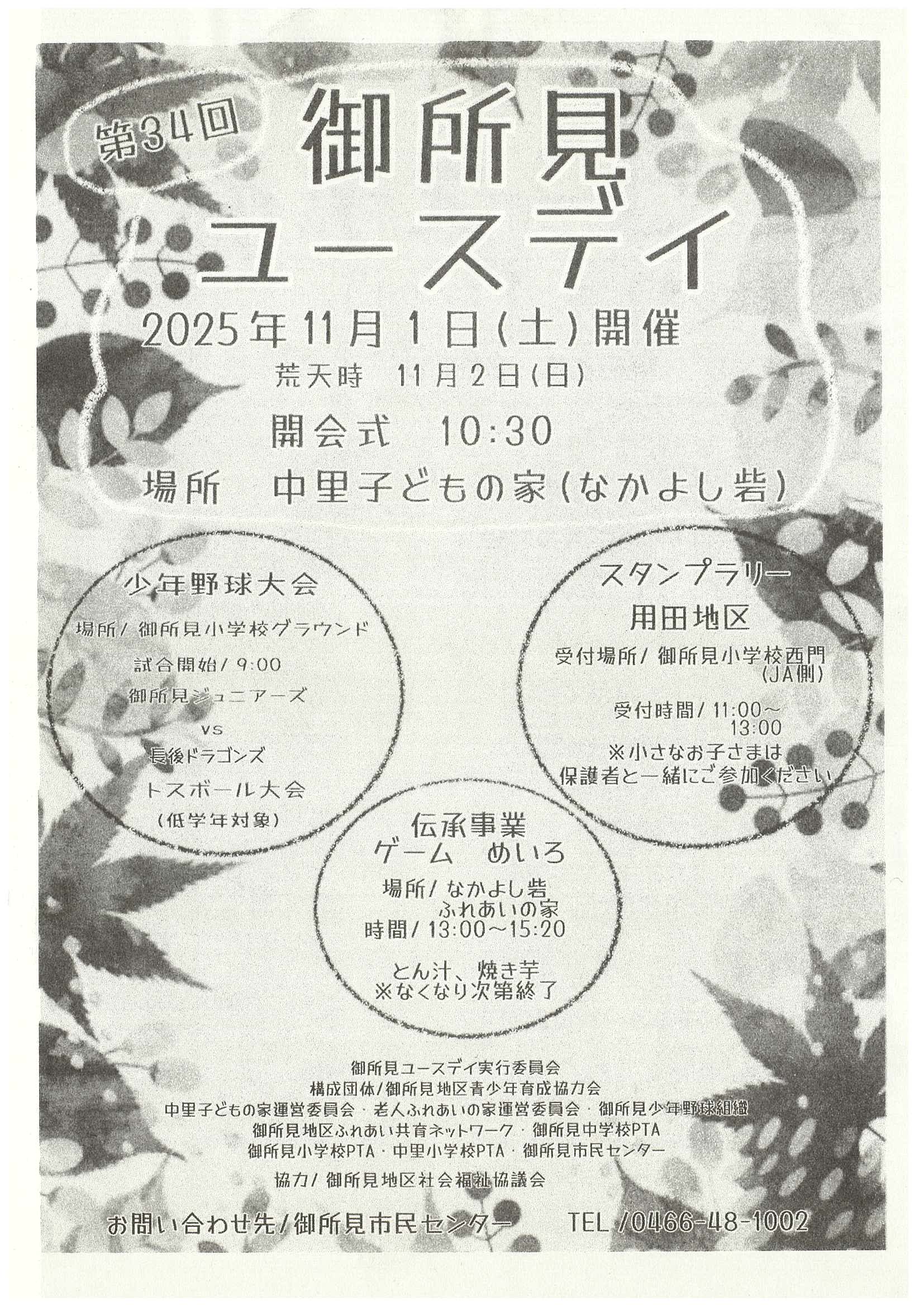 - 第34回御所見ユースデイ【11月1日(土曜日)開催】