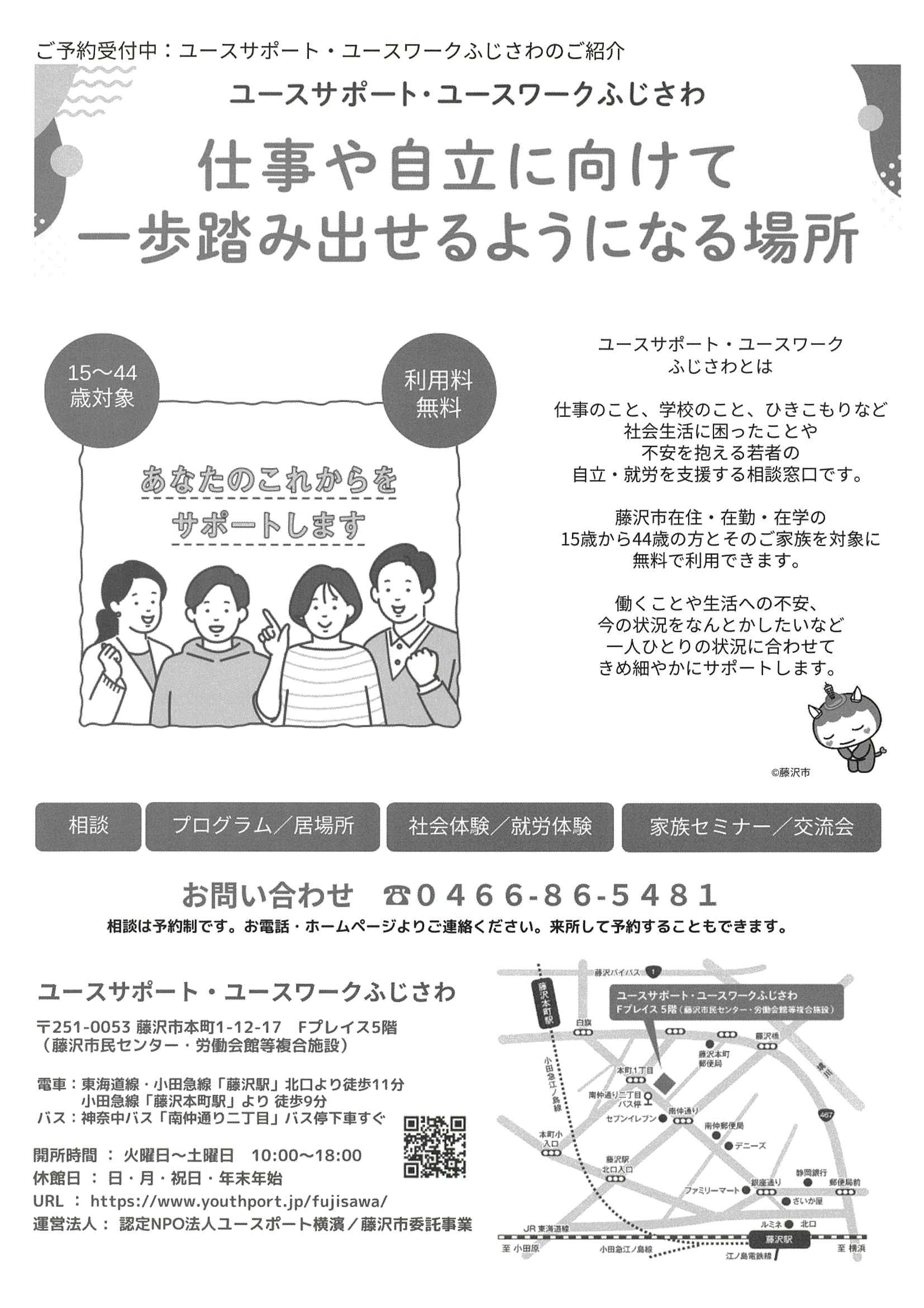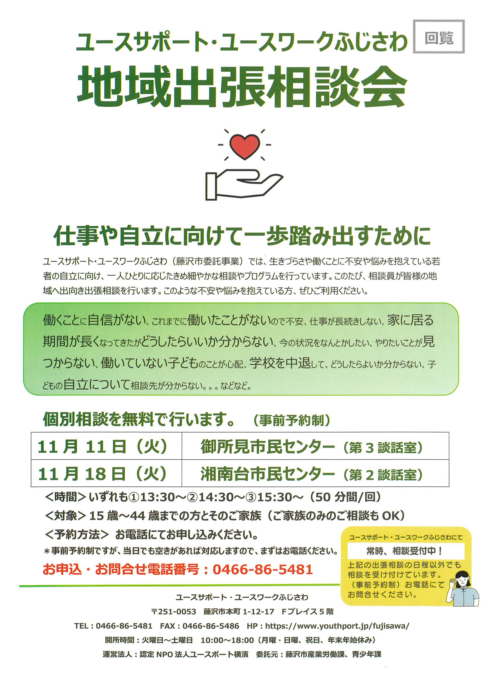 - ユースサポート・ユースワークふじさわ出張相談会のお知らせ(PDF:345KB)【事前予約制】