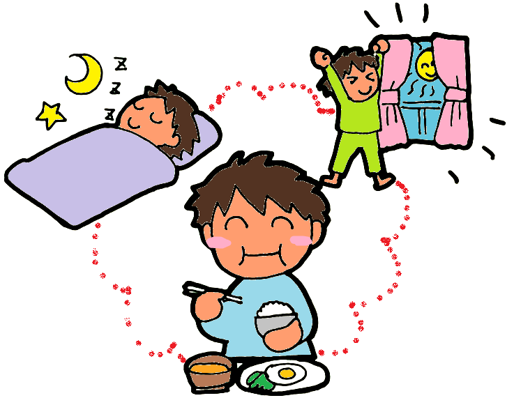 運動会や遠足など、体を動かすイベントが多いこの季節、しっかり元気に楽しむために、早寝早起き朝ごはんで生活リズムをつくりましょう!