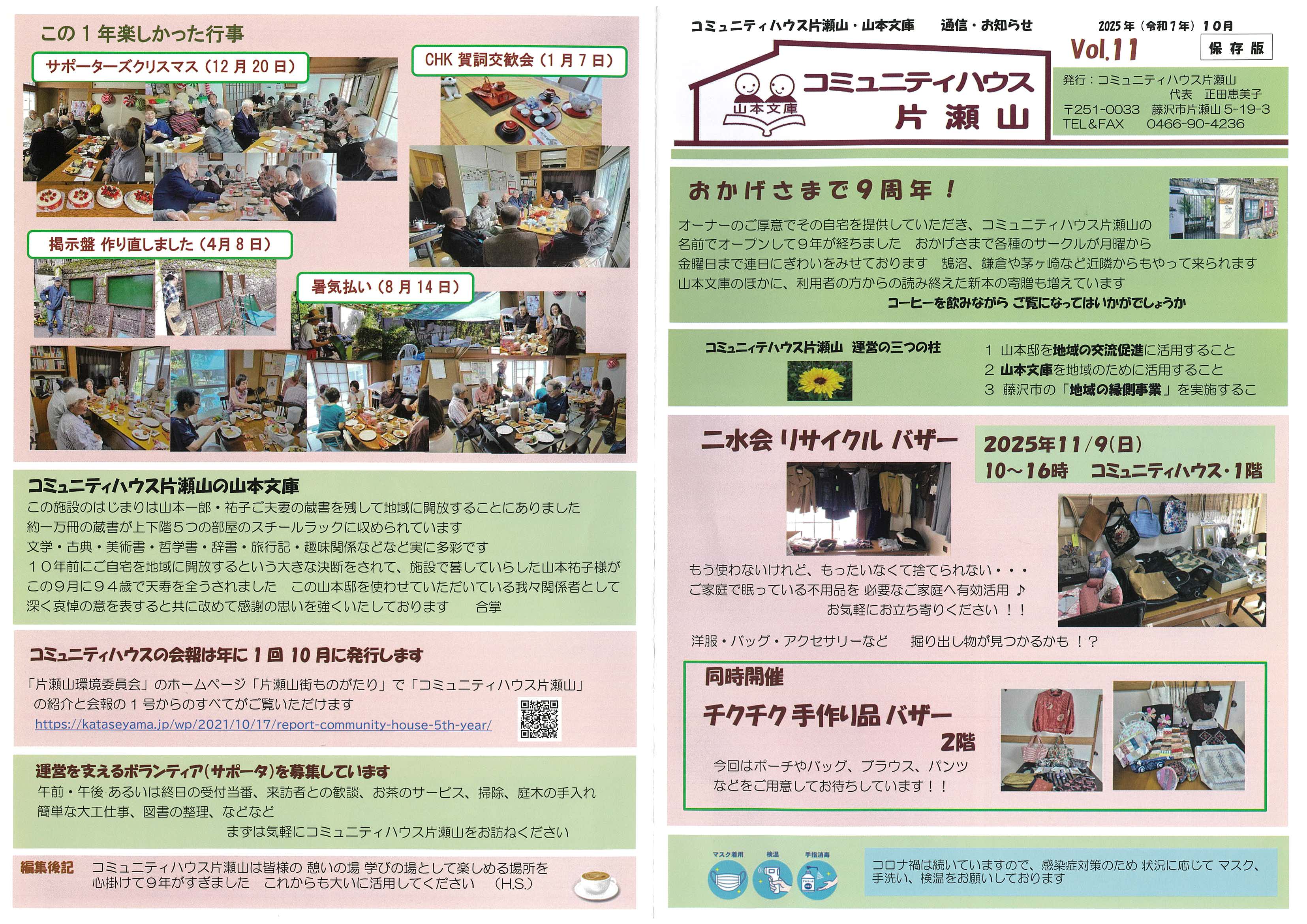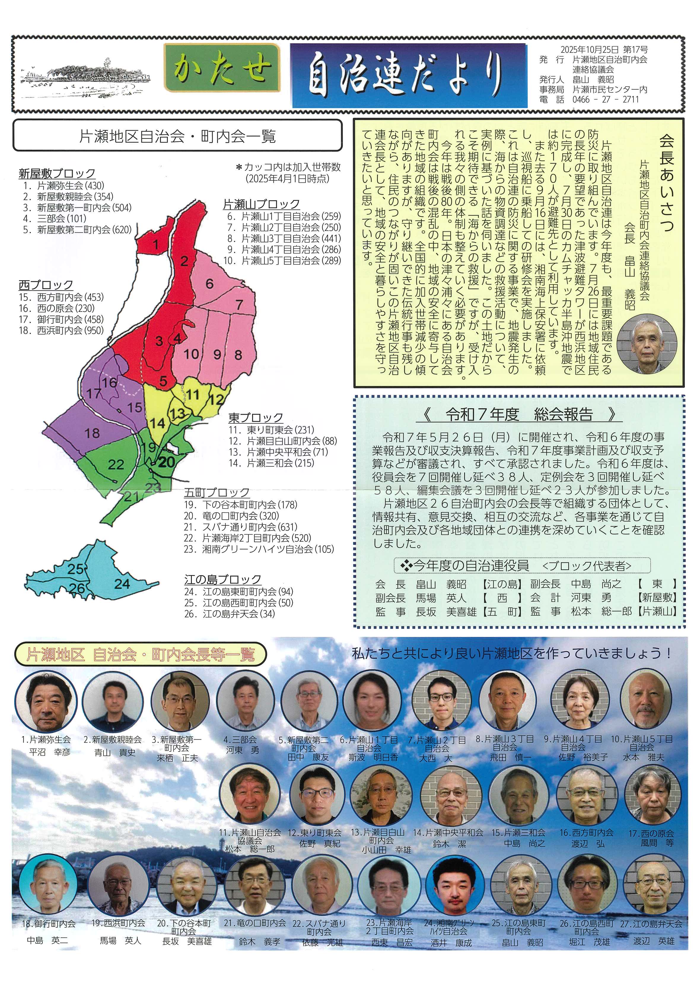 片瀬市民センターでは、「広報ふじさわ」(毎月10日、25日発行)に合わせて、市からのお知らせ等のチラシを片瀬地区の各自治会・町内会にお届けしています。