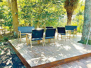 建物前広場にはテーブルや椅子を設け、ゆったりとした休憩スペースを作りました。