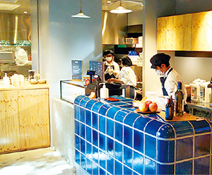 「海山堂」でテイクアウトしたフードやドリンクを同スペースで楽しむこともできます。