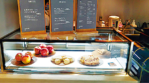 建物内では、松本市のりんごを使用したアップルパイなどをテイクアウトできるほか、同市にちなんだ映像や資料などを展示・配布しています。