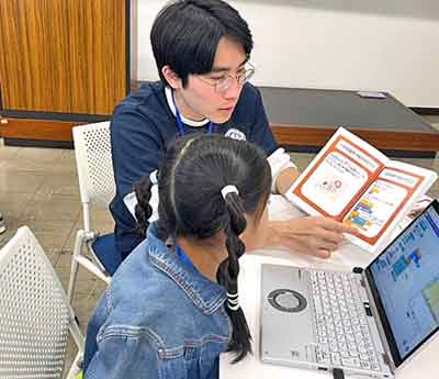 Scratchでオリジナルのゲームを作成します。大学生スタッフがマンツーマンでサポートします。
