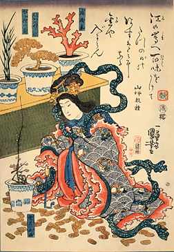 歌川国芳の「弁財天」と、歌川広重の「冨士三十六景」シリーズの江の島から拝む富士山を片面ずつにあしらったA2サイズ縦型の両面刷りポスターカレンダーです。