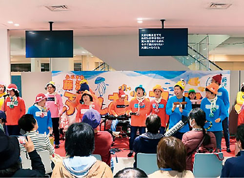 村岡中学校吹奏楽部の演奏、障がい当事者によるフラダンスやバンド演奏ほか