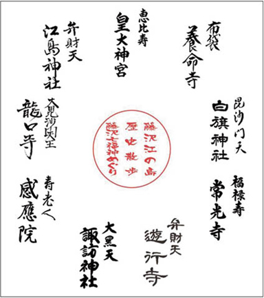 1月6日(火)から藤沢市観光センター、片瀬江の島観光案内所、ふじさわ宿交流館、各市民センター、観光課、小田急線各駅、江ノ島電鉄藤沢駅・江ノ島駅、湘南モノレール湘南江の島駅、藤沢七福神各社寺などで配布