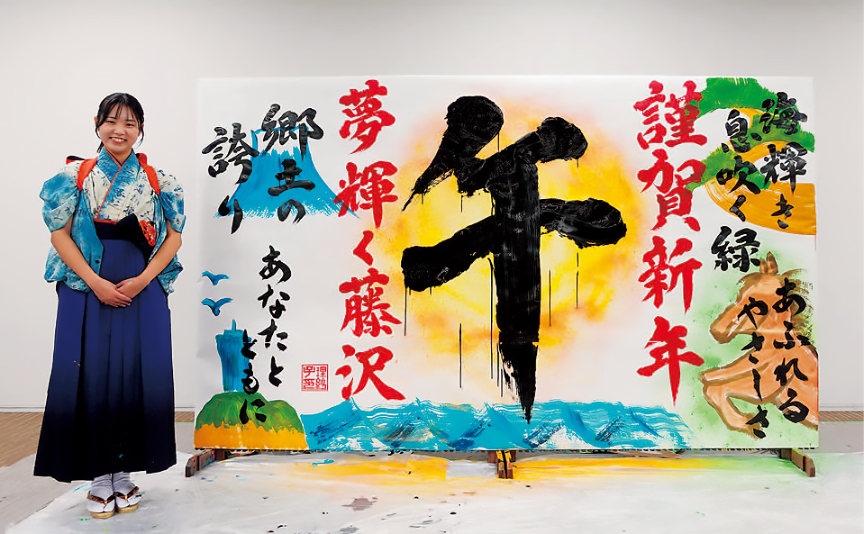 5歳から書道を始め、高校までさまざまな全国大会で最高賞を受賞。現在は、大学の書道学科で学びながら、藤沢をはじめ国内外のイベントで書道パフォーマンスや書作品を通して書道の魅力を発信している。