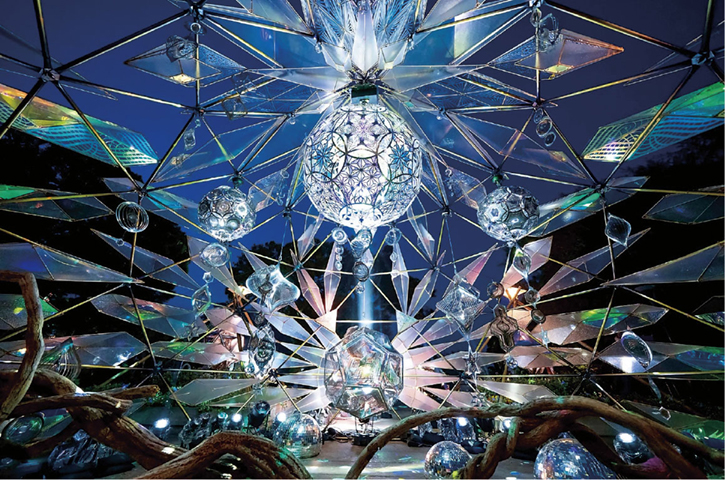 LEDを使った巨大な光の花と音楽が夜の庭園を彩ります。