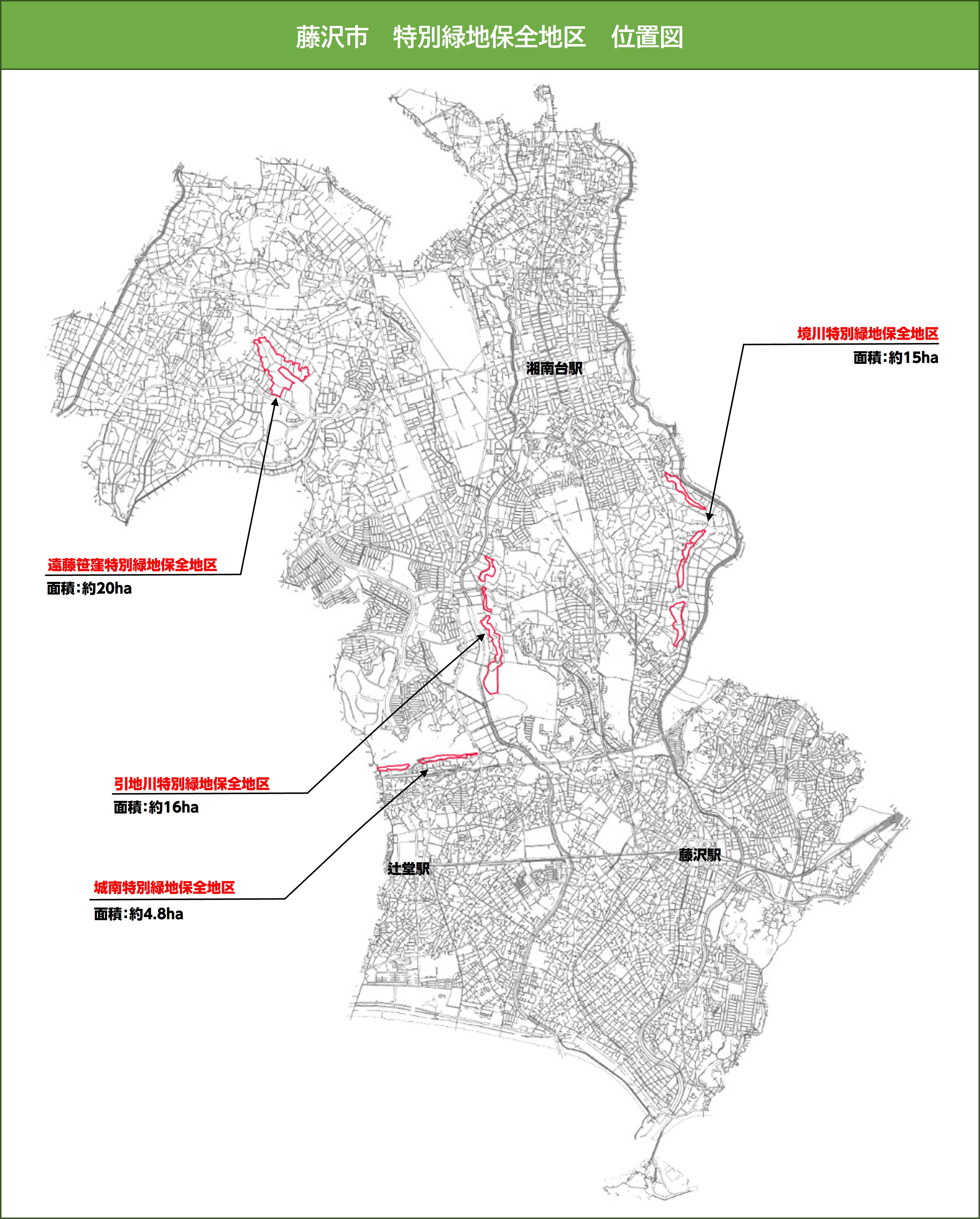 藤沢市では、次の4地区約55.8haを指定しています。