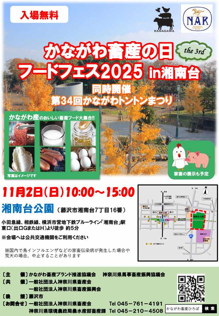 今年も湘南台公園において、かながわ畜産の日フードフェス2025in湘南台が開催されます。