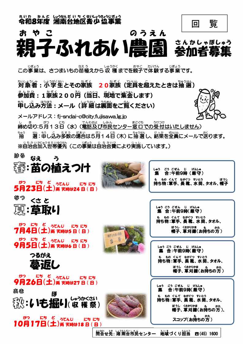- 令和8年度親子ふれあい農園参加者募集(PDF:545KB)
