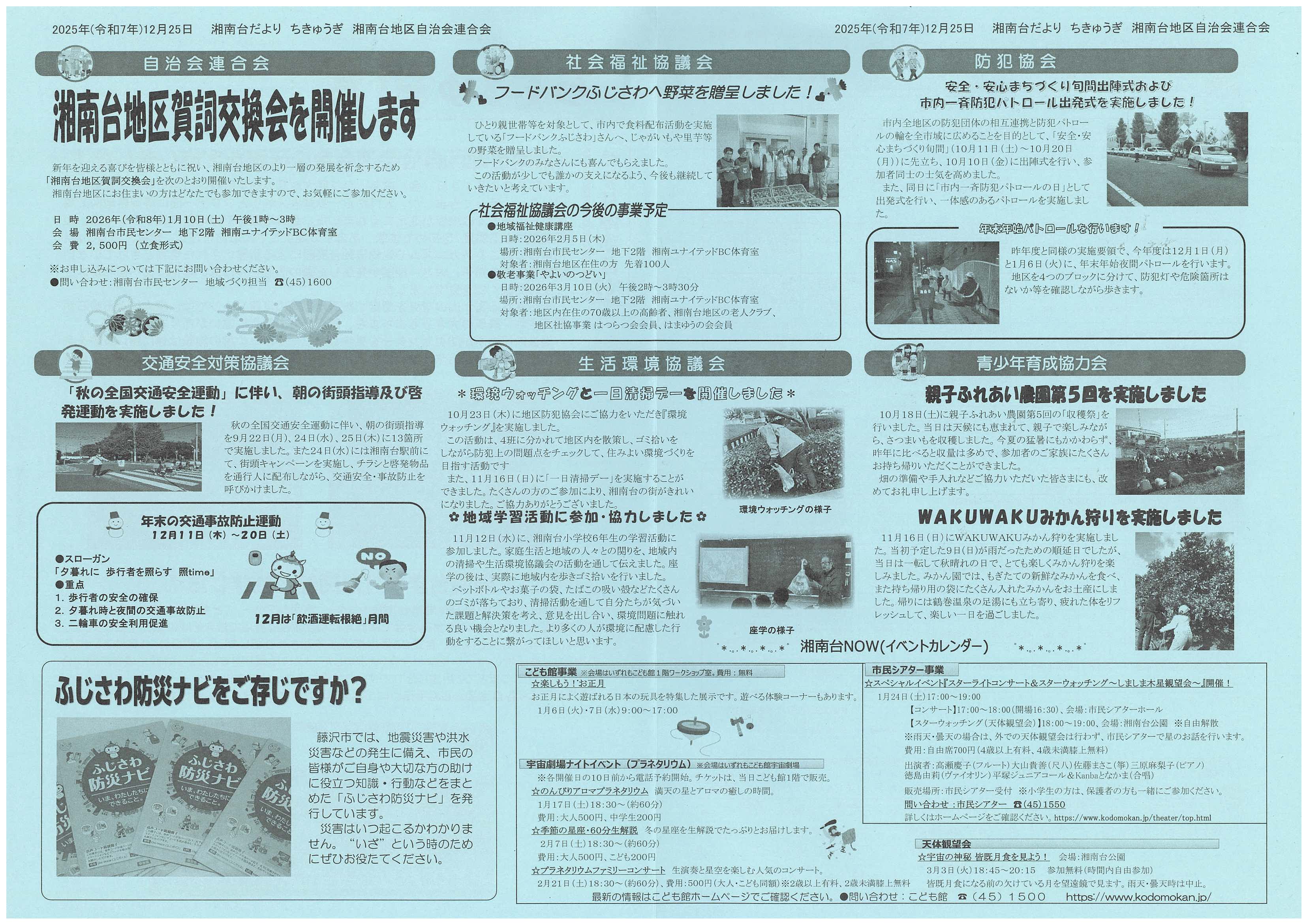 湘南台市民センターでは、「広報ふじさわ」(毎月10日、25日発行)に合わせて、市からのお知らせ等のチラシを湘南台地区の各自治会・町内会にお届けしています。