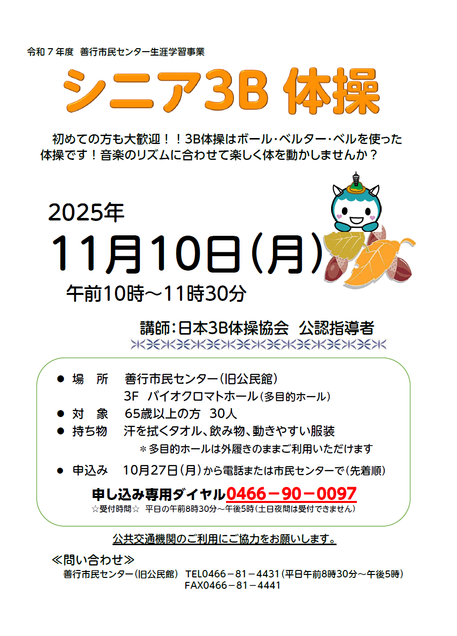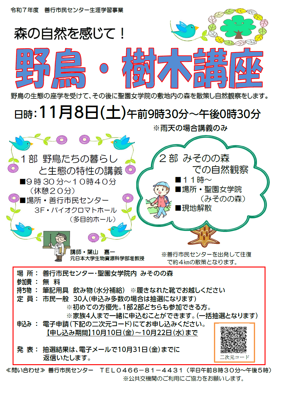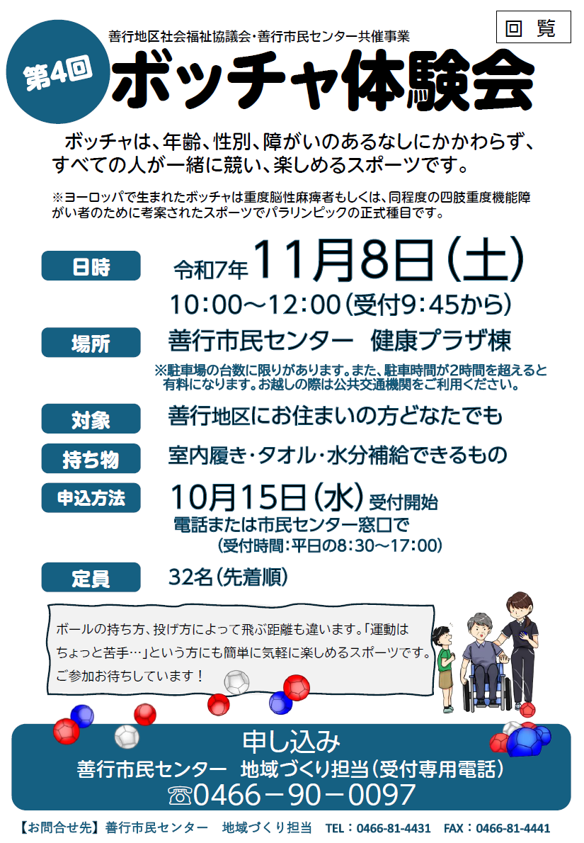 対象:市民一般 善行地区に在住・在勤・在学の方 80人(先着順)