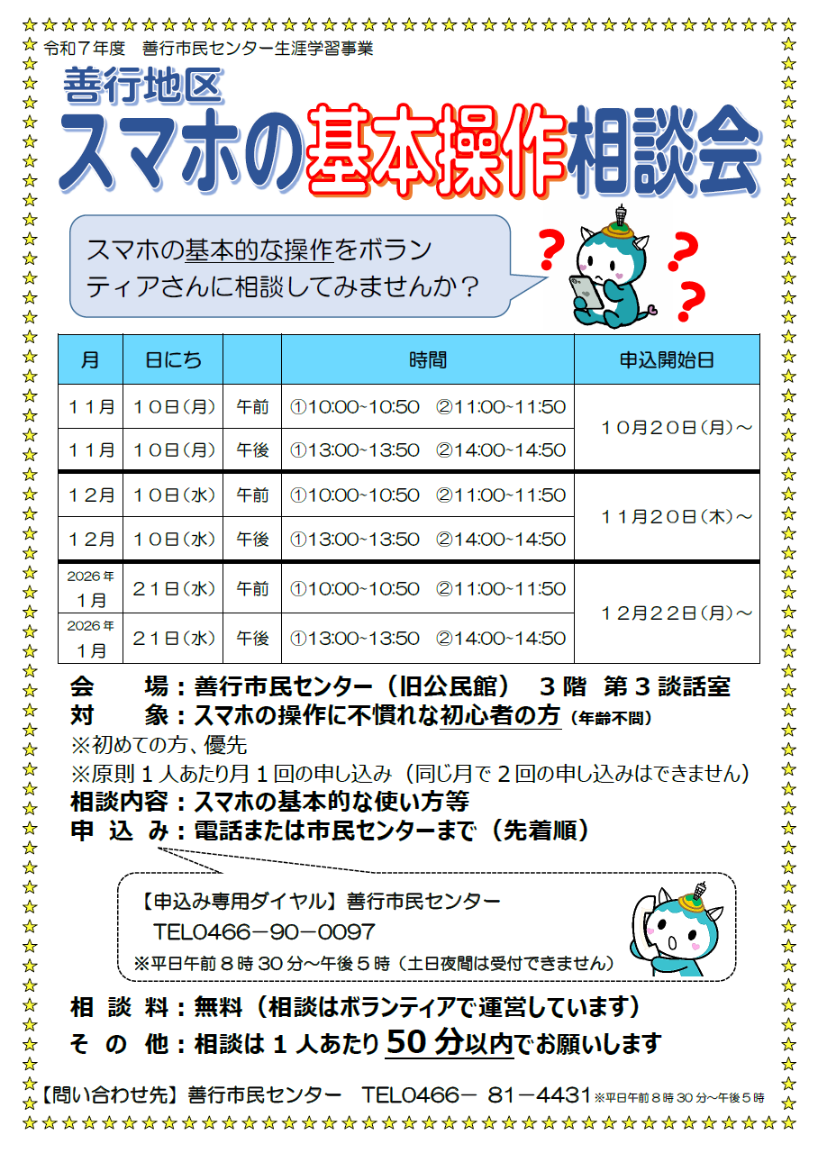 善行地区 スマホ基本操作相談会