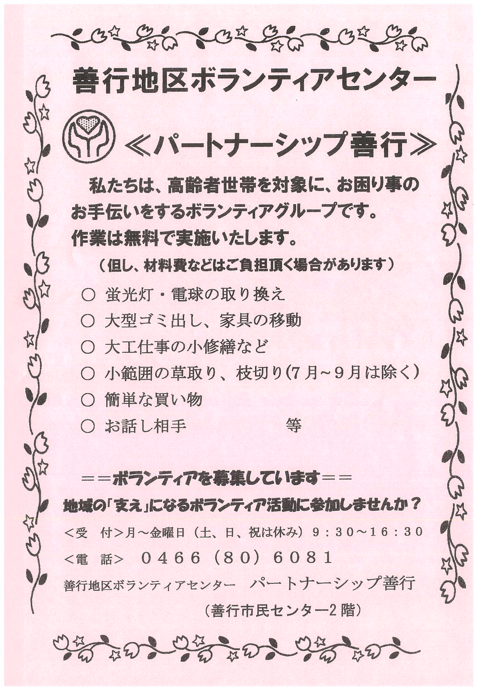 - 善行地区ボランティアセンター「パートナーシップ善行」(PDF:292KB)