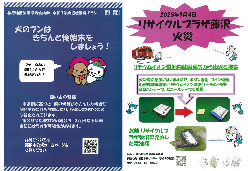 9月25日号広報ふじさわに合わせて善行地区内にお配りする組回覧チラシの一覧です。