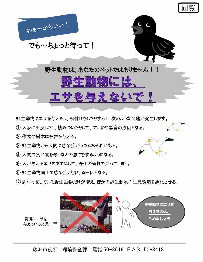 - 〈一部のみ〉野生動物にはエサを与えないで!(JPG:77KB)